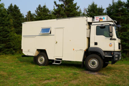 Hier ein paar Daten: MAN TGM 13-250BL 2x4 zuschaltbar 4x4. 9+1R Gang + Untersetzung. Auf 10t abgelastet, was uns gut reicht. Leergewicht habe ich keine Ahnung, da wir nie ohne unsere Standardausstattung wegfahren. 250PS, ca 1000Nm, Sperren vorn und hinten. 385/65-22.5 Baustellen Bereifung ( Reifengröße in vielen Ländern gängig und ruhig aber dennoch grobes Profil. Aber Achtung, eine nasse Wiese mag der auch nicht. Luftfederung hinten gut beim Fahren und sehr praktisch beim Stehen um den Hintern anzuheben bzw. abzusenken. Verbrauch Autobahn in DE ca. 17-18l, Landstraße ca. 19-20l. Hier aktuell in Kanada auf dem Highway 21-25l und Landstr. 20-22l. Also mehr, Grund ist der schlechte Diesel da der Motor weniger Leistung hat. Man kann durch Zugabe von Cetan Booster es ein wenig ausgleichen.